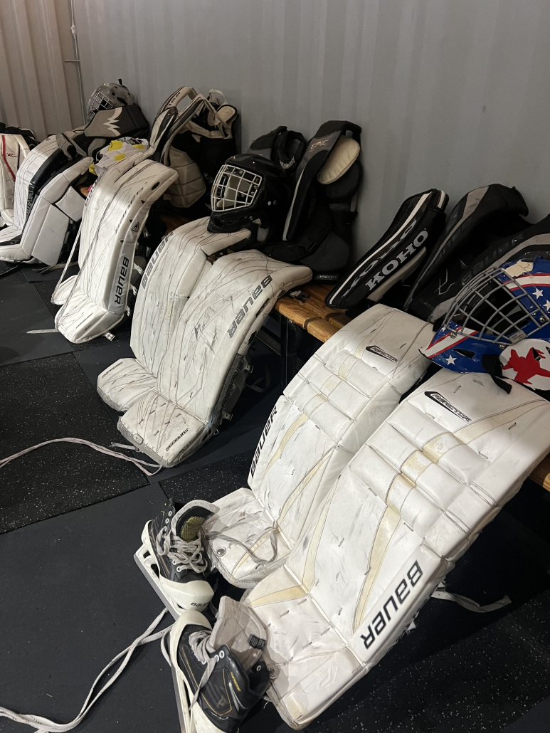 We require all players have their own hockey skates and helmet at minimum. Our games are played in full gear (neck guard required) but we do have a selection of (used) gear available to get you started.